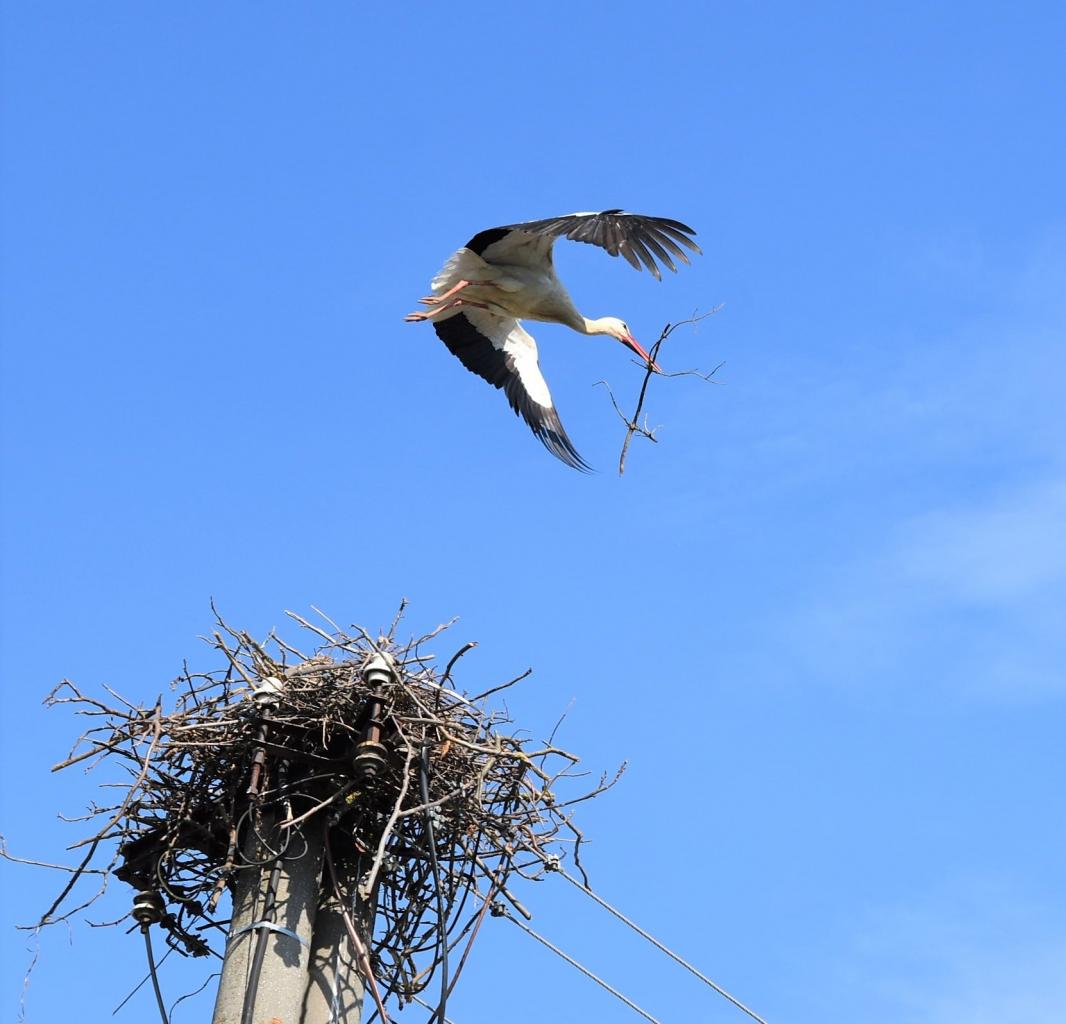 Bocian si začal stavať svoje hniezdo na elektrickom stĺpe na Vodnej ulici. Na pomoc mu prišla aj „pani bocianova“. Novobudované bocianie hniezdo začínalo byť nestabilné a hrozilo jeho zrútenie. Preto sme pomohli aj my a pod hniezdo sme umiestnili pevný sitový kovový kôš a spevnili sme tak hniezdo.