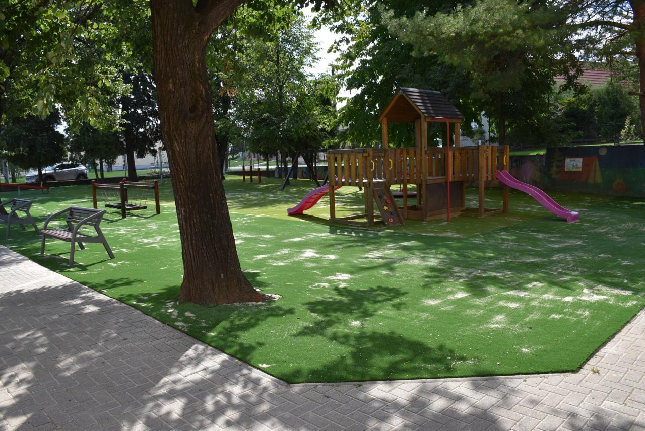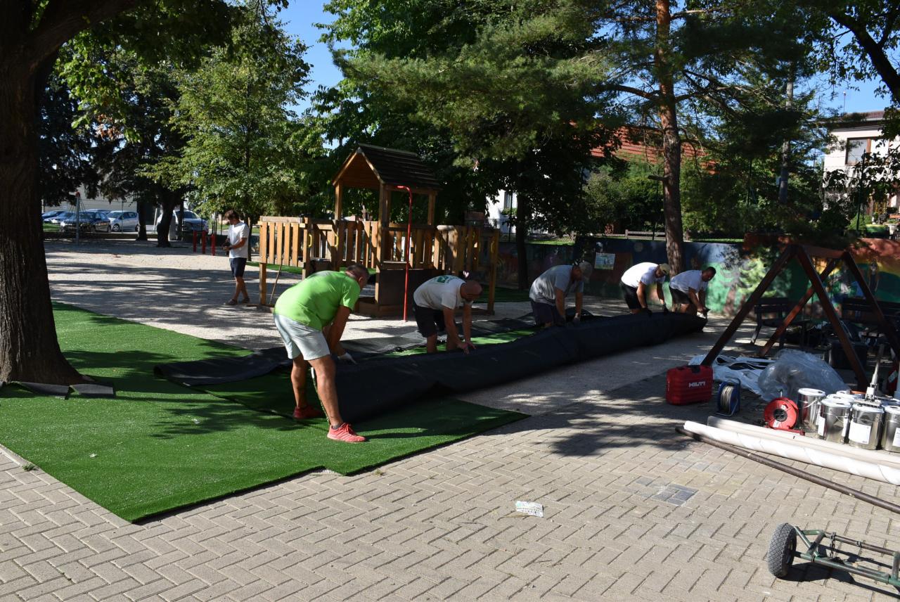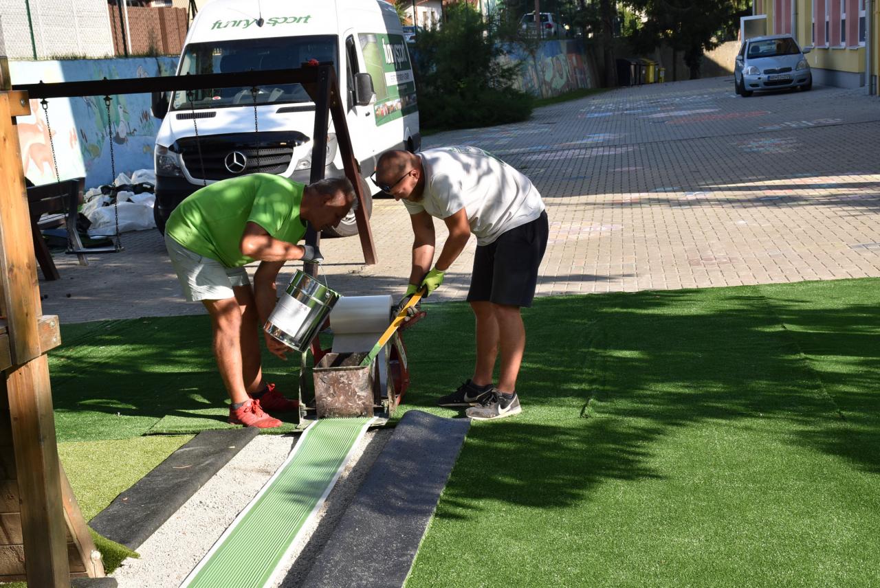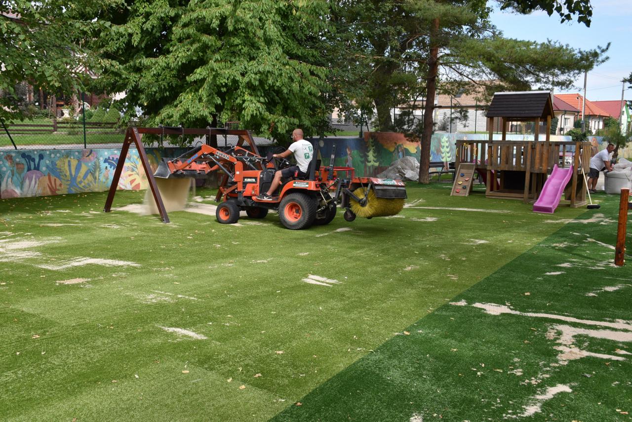 Počas týchto letných prázdnin sme nahradili prírodnú trávu umelou. Foto: Cyprián Bíro