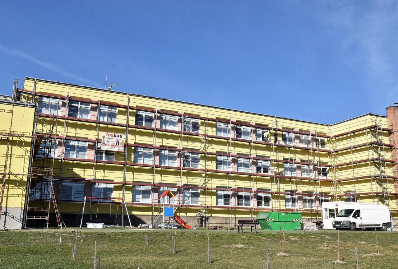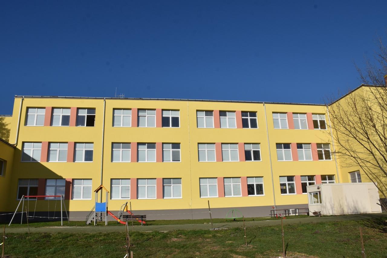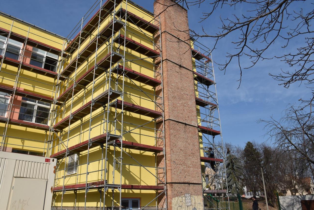 Zasteplenie steny na budove základnej školy. Foto: Cyprián Bíro