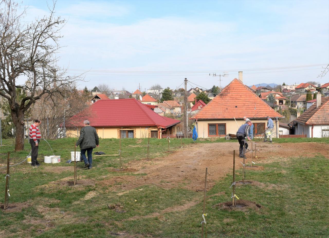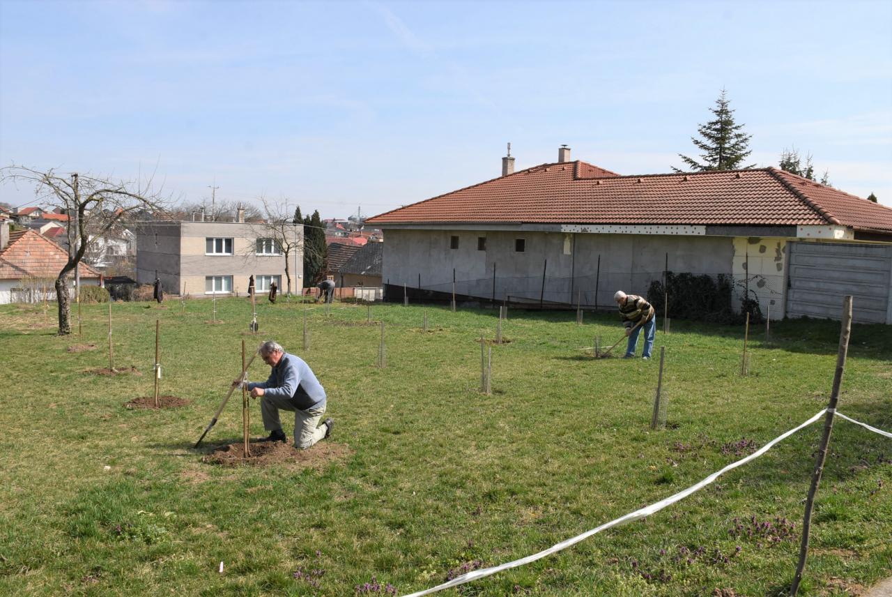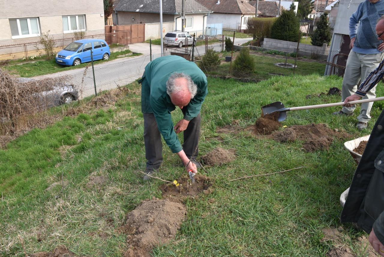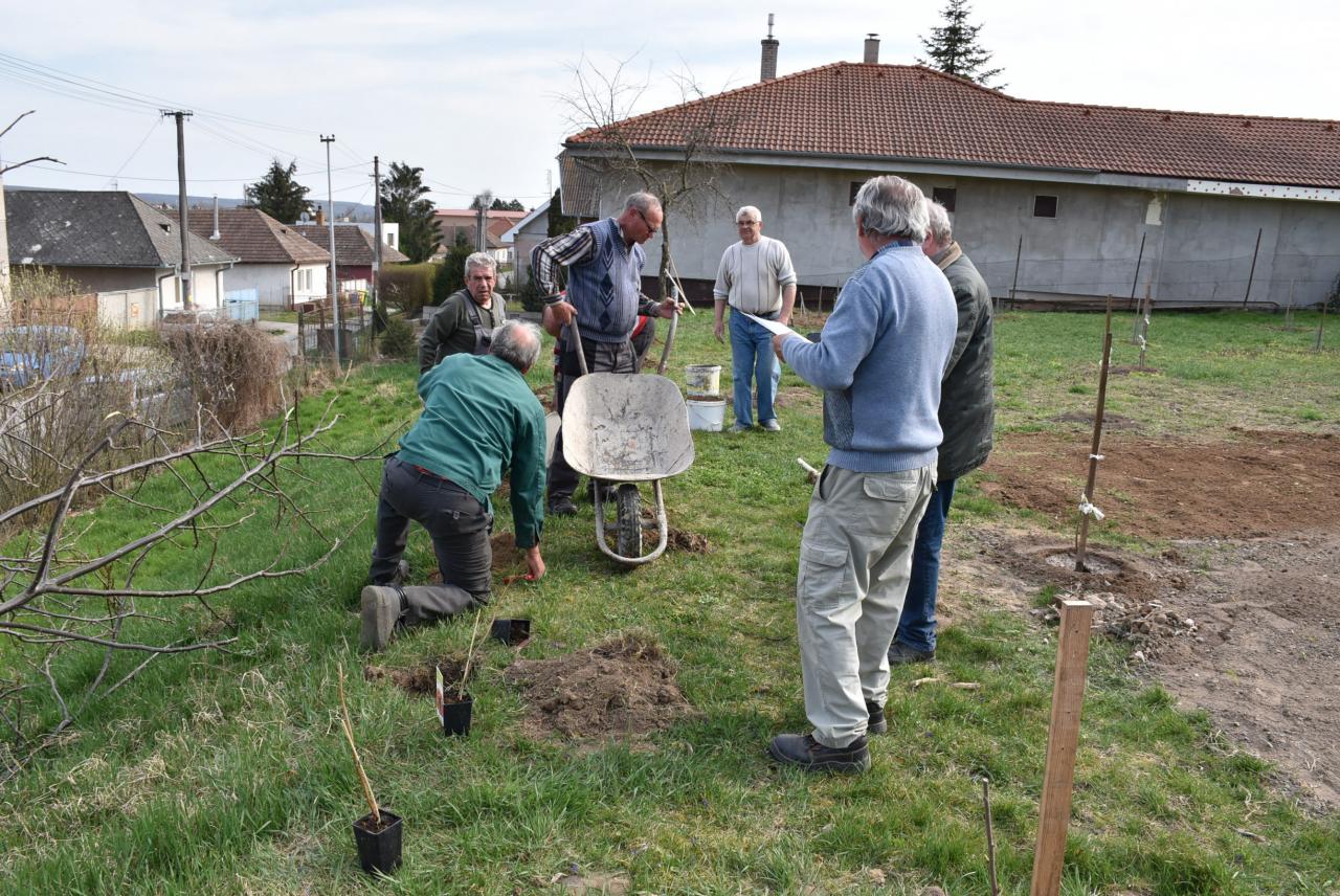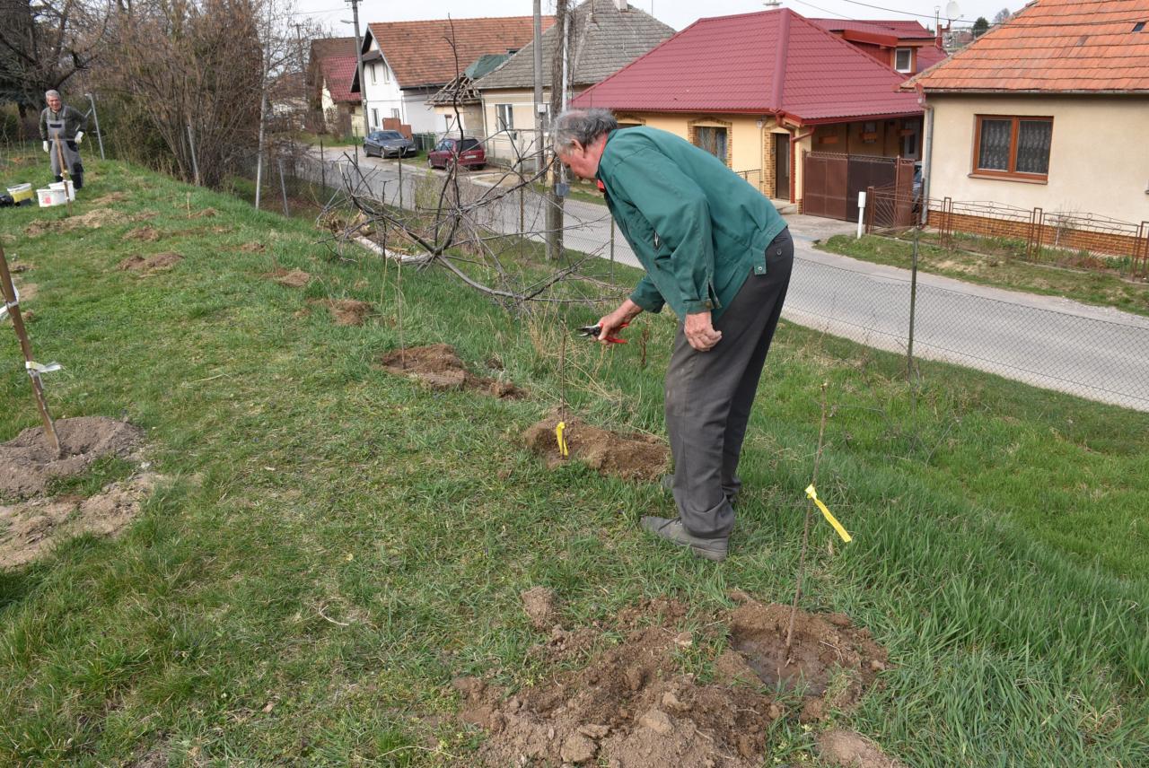 V areáli ZŠ členovia ZO SZZ sadili v ovocnom sade nové ovocné stromy. Foto: Cyprián Bíro