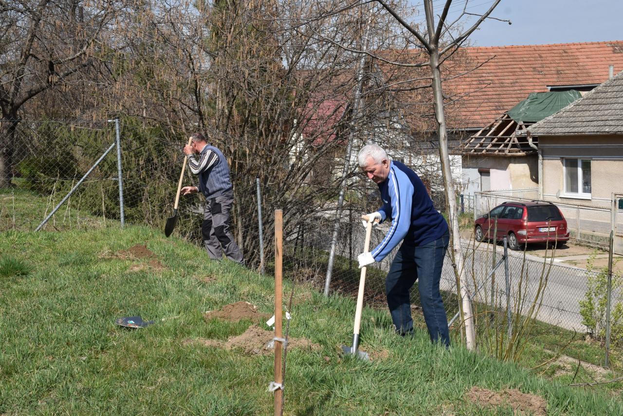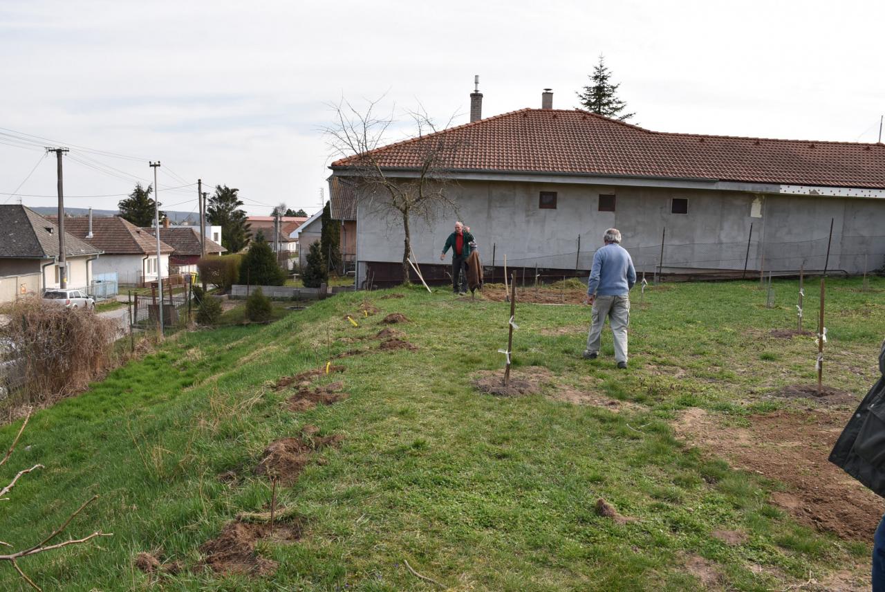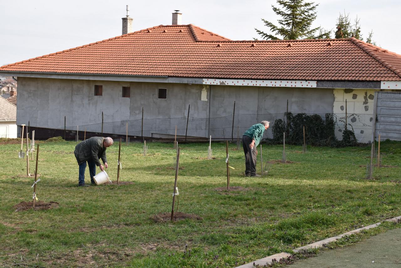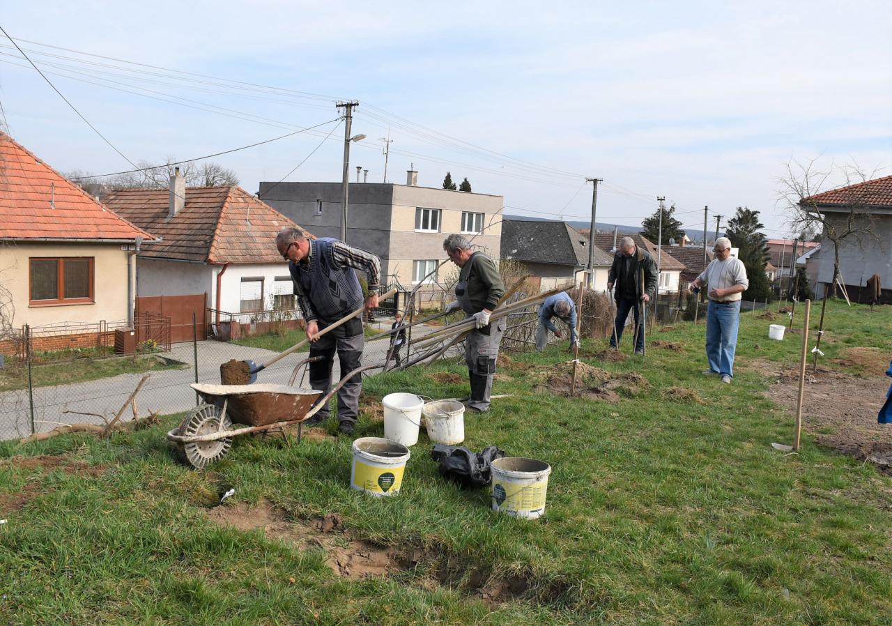 V areáli ZŠ členovia ZO SZZ sadili v ovocnom sade nové ovocné stromy. Foto: Cyprián Bíro
