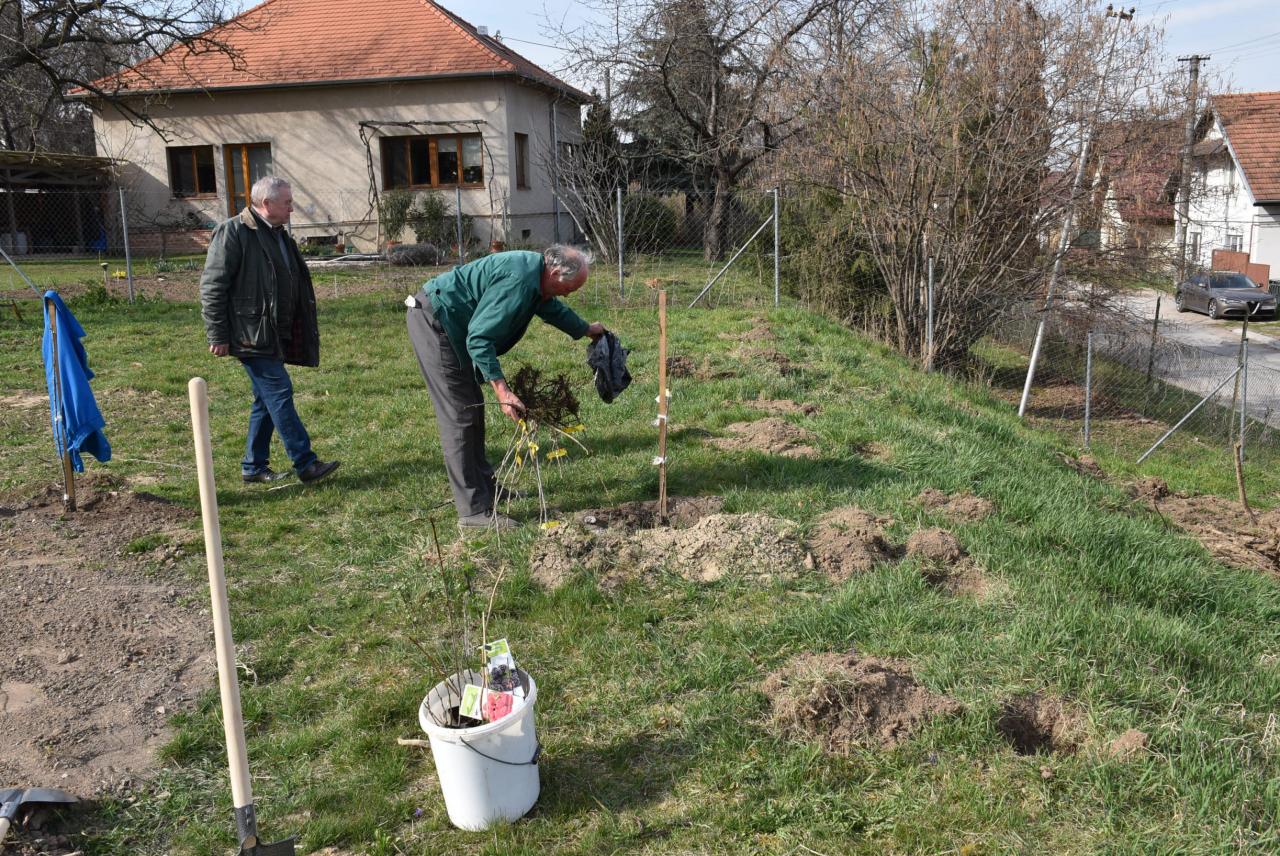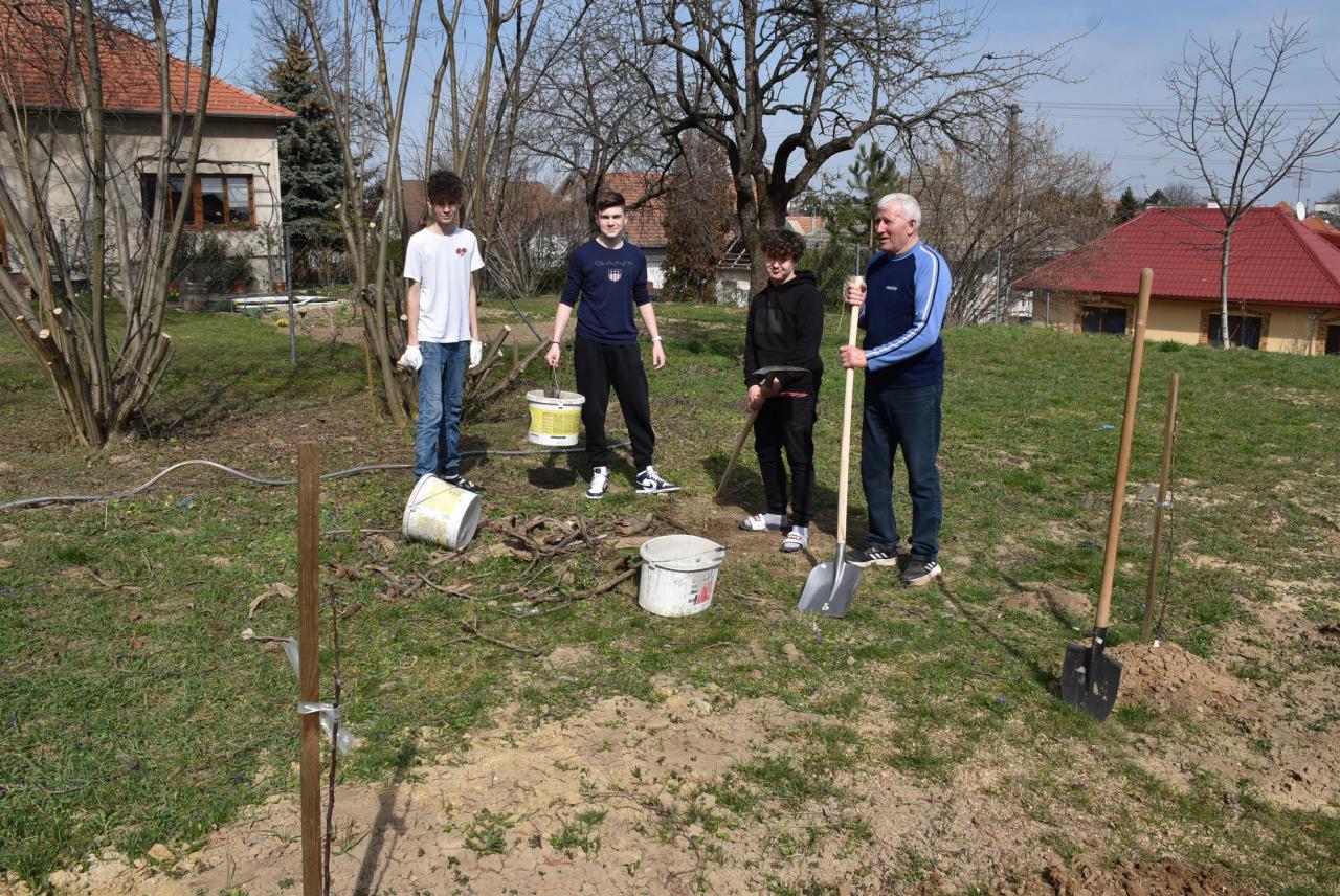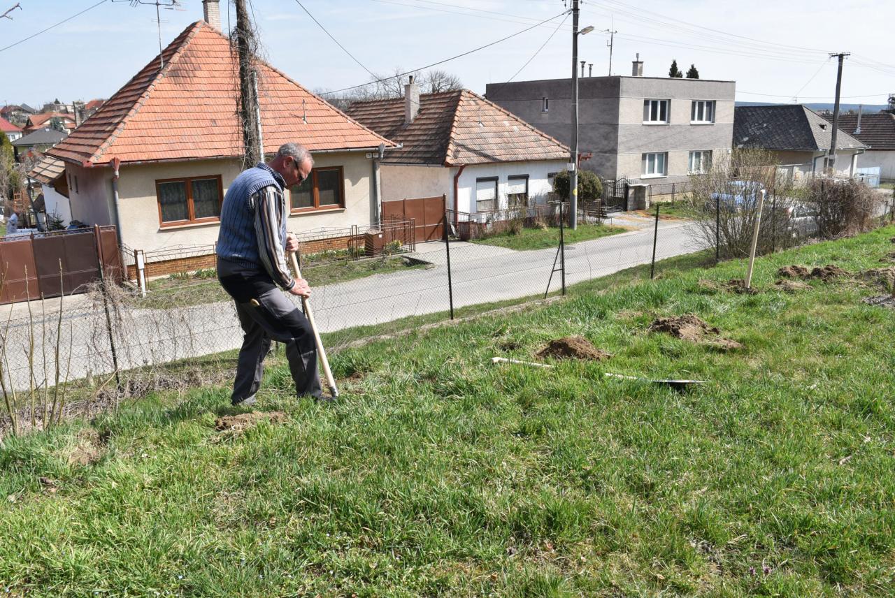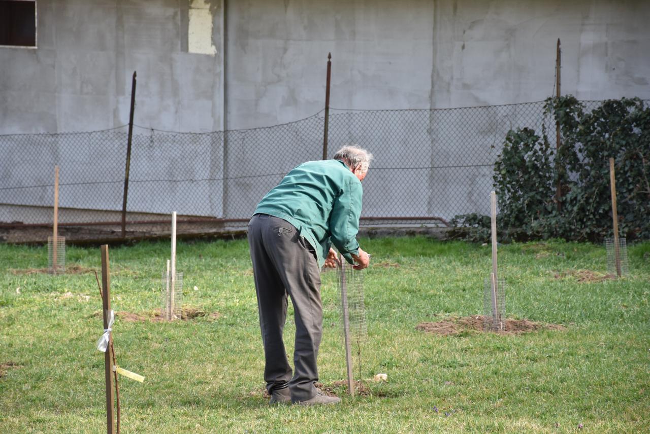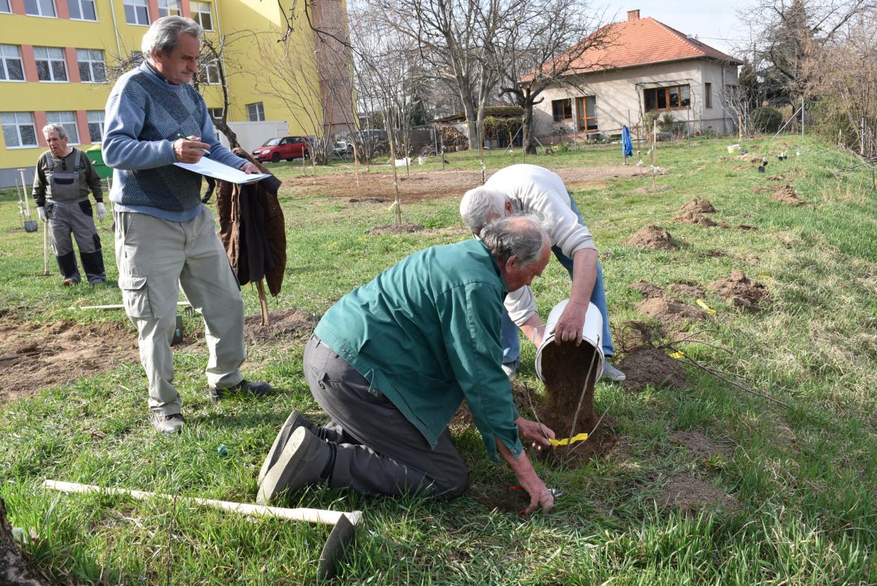 V areáli ZŠ členovia ZO SZZ sadili v ovocnom sade nové ovocné stromy. Foto: Cyprián Bíro