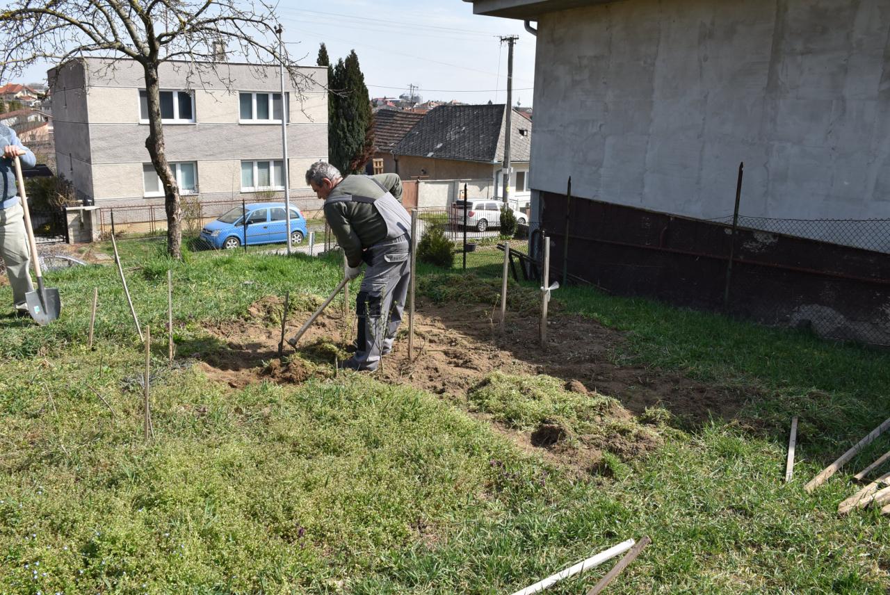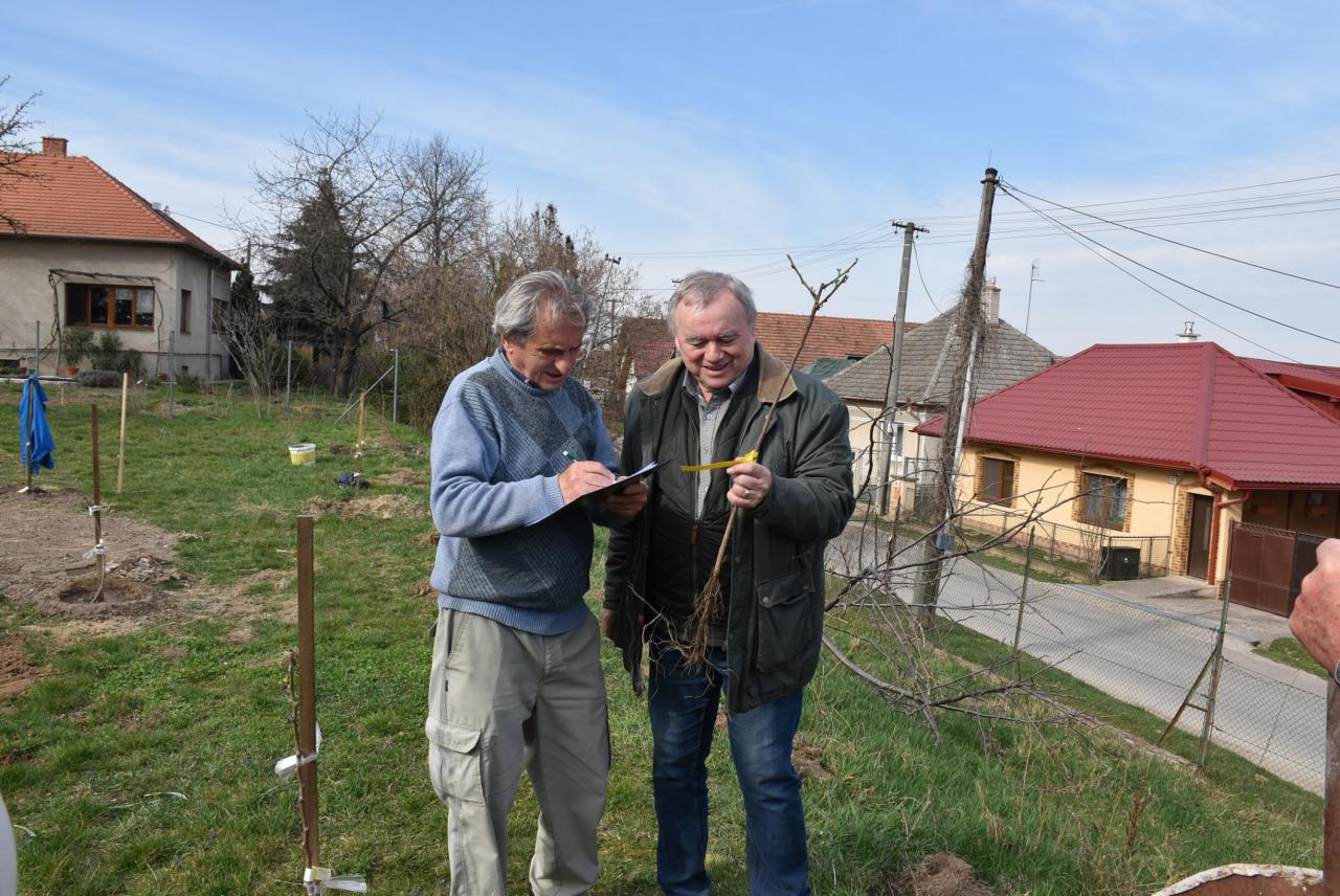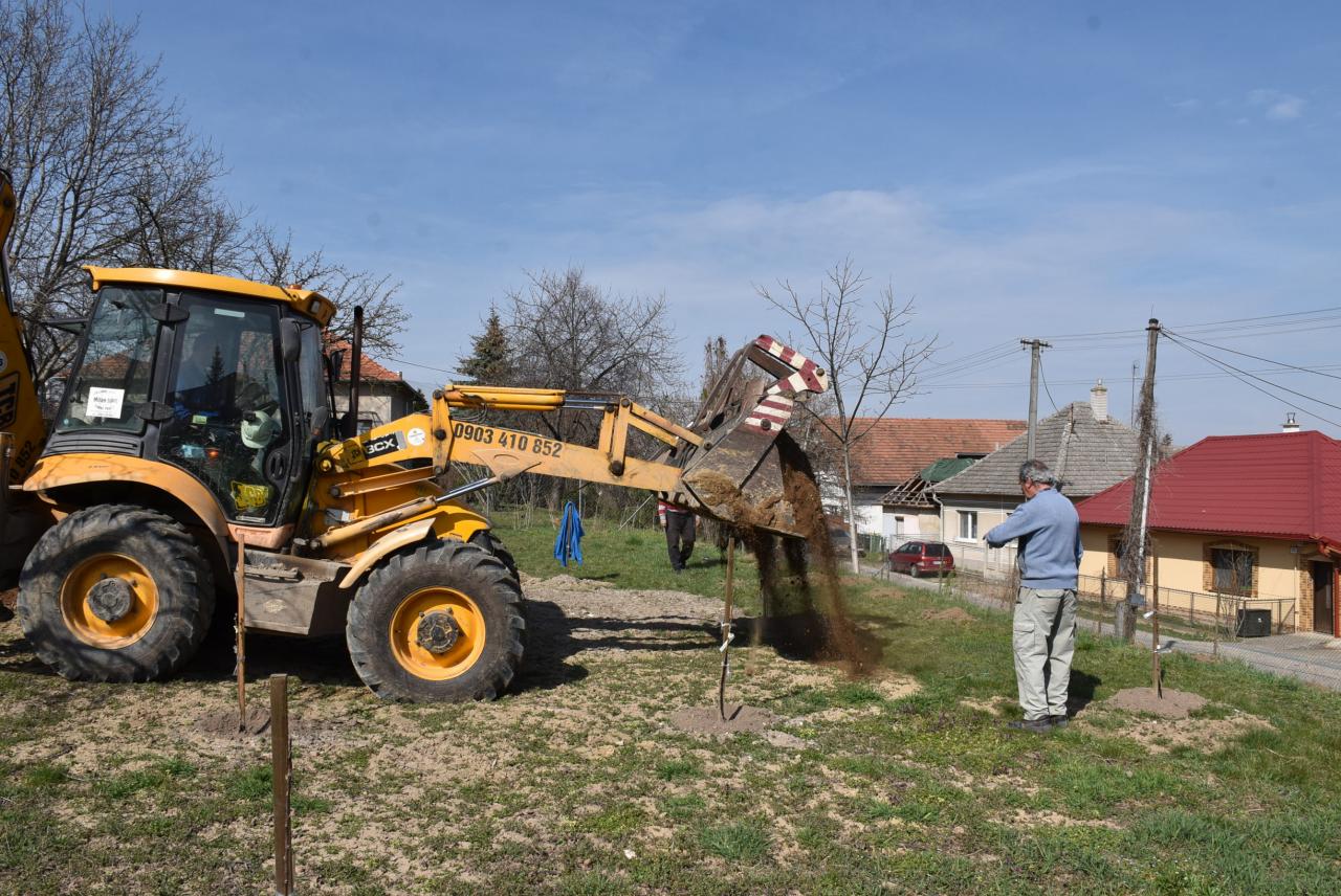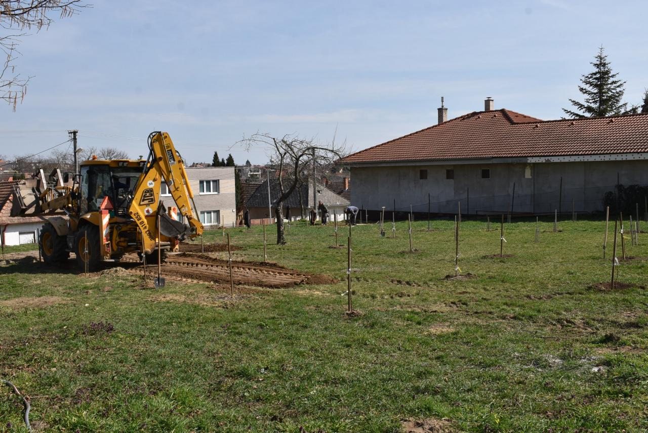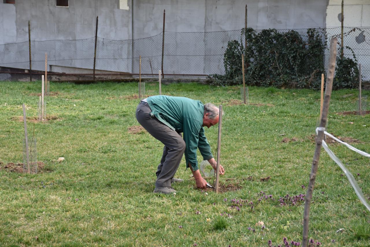 V areáli ZŠ členovia ZO SZZ sadili v ovocnom sade nové ovocné stromy. Foto: Cyprián Bíro