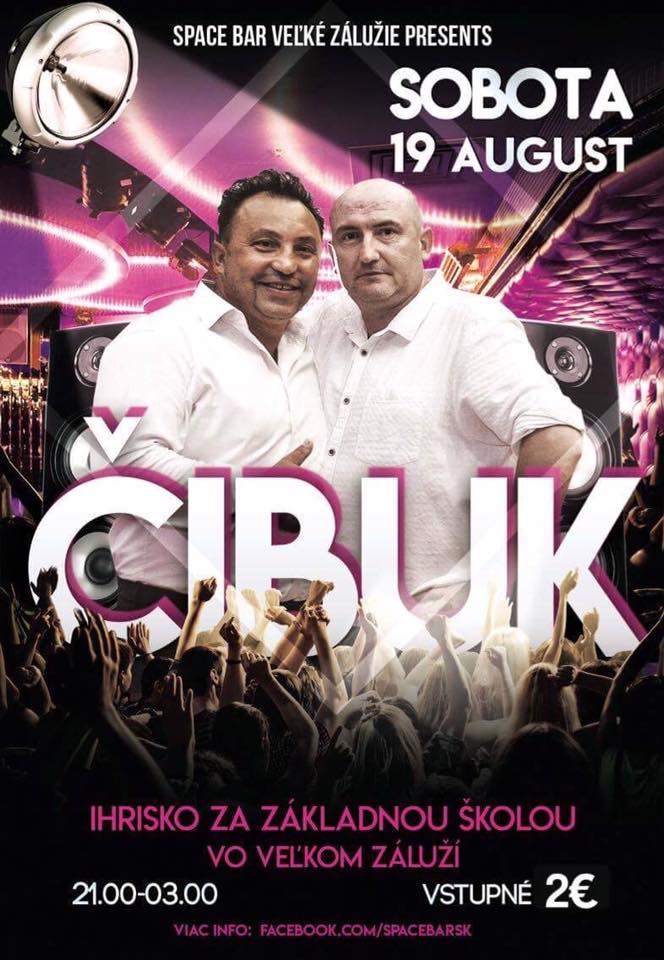 Space Bar Veľké Zálužie v spolupráci s Obcou Veľké Zálužie pozýva všetkých občanov na tanečnú zábavu, ktorá sa uskutoční dňa 19.08.2017, t.j. v sobotu o 21,00 hod. na malom ihrisku za základnou školou. Do tanca hrá hudobná skupina ČIBUK. Vstupné je 2,00 €.