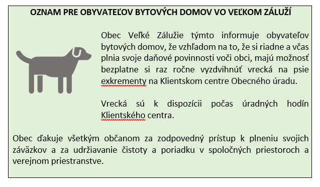Vrecká sú k dispozícii počas úradných hodín Klientskeho centra.