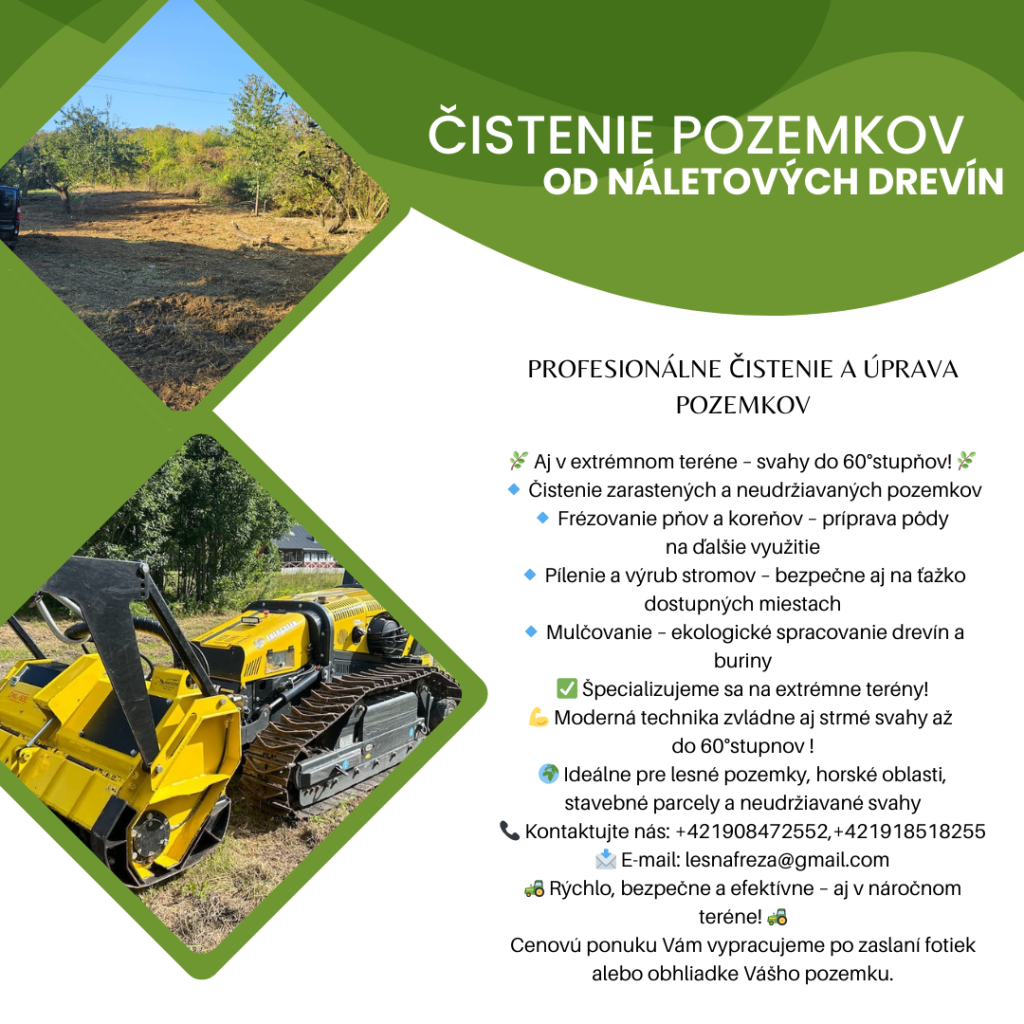 Ponúkame vám čistenie pozemkov od náletových drevín s profesionálnym strojom.